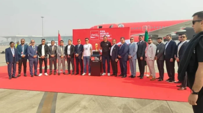 বাংলাদেশে চলে এসেছে ফিফা ফুটবল বিশ্বকাপের মূল ট্রফি। আজ বুধবার সকাল ১০টার দিকে বাংলাদেশে এসে পৌঁছায় সোনালি ট্রফিটি।এটি বাংলাদেশের জন্য ফিফার ট্রফি ভ্রমণের চতুর্থবারের মতো সফর। বিশ্বকাপ ট্রফিটি হযরত শাহজালাল