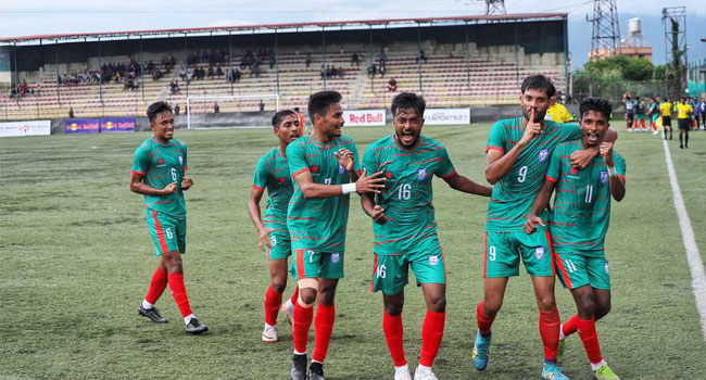 ‘নতুন বাংলাদেশকে’ দারুণভাবে বরণ করে নিলো ফুটবল। উপহার দিলো শিরোপা। প্রথমবারের মতো সাফ অনূর্ধ্ব-২০ চ্যাম্পিয়নশিপের শিরোপা জিতেছে বাংলাদেশ। স্বাগতিক নেপালকে ৪-১ ব্যবধানে উড়িয়ে দিয়েছে টাইগাররা। বুধবার কাঠমান্ডুর আনফা কমপ্লেক্সে সাফ