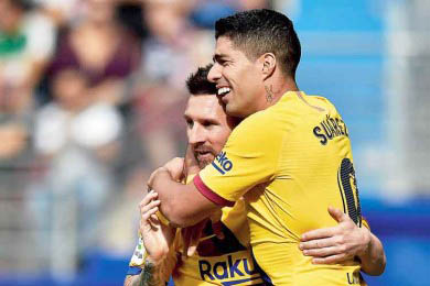 চলতি মরসুমে প্রথম বার লা লিগা টেবলের শীর্ষে উঠে এল বার্সেলোনা। ইপুরুয়া মিউনিসিপ্যাল গ্রাউন্ডে লিয়োনেল মেসিরা ৩-০ হারাল এইবারকে। মেসি নিজে গোল করলেন। করালেনও। বার্সার পয়েন্ট এখন ৯ ম্যাচে ১৯।