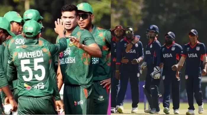 বাংলাদেশকে উদযাপনের উপলক্ষ এনে দিলেন রিশাদ হোসেন। পাওয়ার প্লে থেকে বড় সংগ্রহের ভিত পেয়ে যাওয়া যুক্তরাষ্ট্রকে জোড়া ধাক্কা দিলেন তিনি। পরপর দুই বলে উইকেট তুলে নিয়ে জাগিয়ে ছিলেন হ্যাটট্রিকের সম্ভাবনাও।