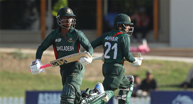 ভারতকে হারিয়ে ফাইনালে পা রেখেছে বাংলাদেশ অনূর্ধ্ব-১৯ দল। লক্ষ্য খুব একটা বেশি ছিল না। কিন্তু ৩৪ রানের মধ্যেই প্রথম তিন ব্যাটারকে হারিয়ে চাপে পড়ে বাংলাদেশ অনূর্ধ্ব-১৯ দল। এরপর হাল ধরেন
