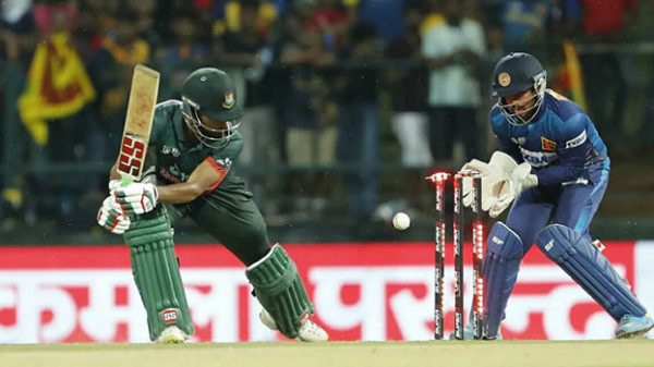 দ্রুত দুই উইকেট তুলে নিয়ে ম্যাচে চাঞ্চল্য ফেরালো বাংলাদেশ। ব্যক্তিগত ৫৪ রানে অফস্পিনার শেখ মেহেদী হাসানের বলে সাদিরা সামারাবিক্রমাকে স্টাম্পিং করেন মুশফিক। ৭ রানের ব্যবধানে ধনাঞ্জয়া ডি সিলভাকে সরাসরি বোল্ড