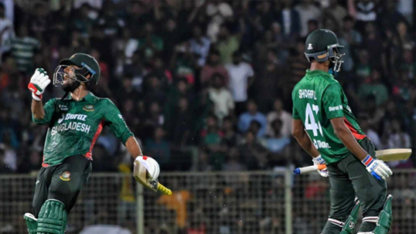 আফগানিস্তানের দেওয়া ১৫৫ রানের লক্ষ্যে একপর্যায়ে ১০ ওভার ১ বলে ৬৪ রান তুলতেই ৪ উইকেট হারিয়ে বসে বাংলাদেশ। সেখান থেকে ৪৩ বলে ৭৩ রানের জুটি গড়েন তাওহীদ হৃদয় ও শামীম