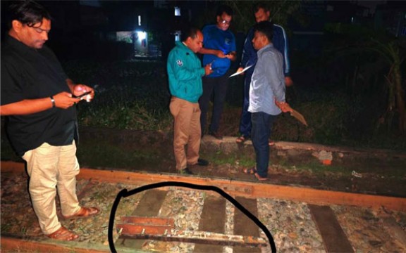 ঢাকা-নারায়ণগঞ্জ রেললাইনে ভয়াবহ রেল দুর্ঘটনার চেষ্টা চালিয়েছে দুর্বৃত্তরা। রেললাইনের উপরে মোটা লোহার পাত রাখা হয়েছিল। ফলে চলন্ত ট্রেন উল্টে পড়ে হতাহত হওয়ার আশঙ্কা ছিল। মঙ্গলবার দিবাগত রাত সাড়ে ১২টার দিকে