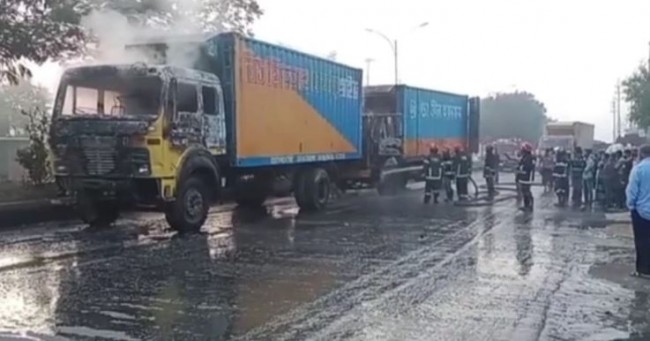 গাজীপুরে পোশাক কারখানার দু’টি কাভার্ডভ্যানে আগুন দিয়েছে দুর্বৃত্তরা। বৃহস্পতিবার সকালে ঢাকা-ময়মনসিংহ মহাসড়কের গাজীপুর মহানগরের সদর থানাধীন ১৯ নম্বর ওয়ার্ডের দক্ষিণ সালনা এলাকায় এ ঘটনা ঘটে। সদর থানা সূত্রে জানা যায়,