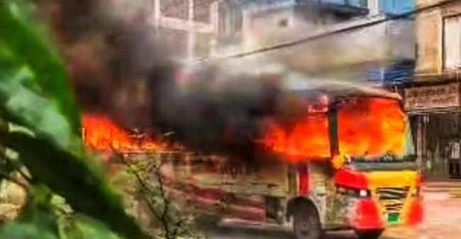 বিএনপির ডাকা ৪৮ ঘণ্টার হরতালের দ্বিতীয় দিনে রাজধানীর মিরপুরে বিআরটিসির একটি ডাবল ডেকার বাসে আগুন দিয়েছে দুর্বৃত্তরা। আজ সোমবার দুপুর আড়াইটার দিকে মিরপুর ১০ নম্বর গোলচত্ত্বর এলাকায় ওই বাসে আগুন