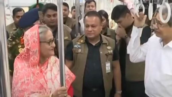 মেট্রোরেলে চড়ে রাজধানীর আগারগাঁও থেকে মাত্র ২৫ মিনিটে মতিঝিলে পৌঁছেছেন প্রধানমন্ত্রী শেখ হাসিনা। আজ শনিবার দুপুর ২টা ৪১ মিনিটের দিকে বিদ্যুৎচালিত দ্রুতগতির এ যানে আগারগাঁও থেকে যাত্রা শুরু করেন তিনি।