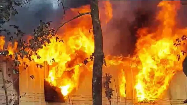 গাজীপুর সদরের বাঘেরবাজার এলাকায় কোয়ালিটি ফিড নামে একটি পশু খাদ্যের কারখানায় আগুন লেগেছে। রোববার (৫ নভেম্বর) দুপুরে এ আগুন লাগে। ছবি: ইত্তেফাক পুলিশ ও স্থানীয় সূত্রে জানায়, দুপুর দেড়টার দিকে
