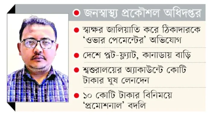 সরকারি প্রাথমিক বিদ্যালয়ে ওয়াশ ব্লক (ওয়াটার, স্যানিটেশন ও হাইজিন অংশ) নির্মাণ প্রকল্পে স্বাক্ষর জালিয়াতি করে ঠিকাদারকে বাড়তি বিল দেওয়ার অভিযোগ রয়েছে জনস্বাস্থ্য প্রকৌশল অধিদপ্তরের নির্বাহী প্রকৌশলী মোহাম্মদ নাসরুল্লাহর বিরুদ্ধে। এ