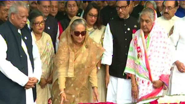 বঙ্গবন্ধু শেখ মুজিবুর রহমানের জন্মশতবার্ষিকী উপলক্ষে ধানমন্ডির ৩২ নম্বরে তার প্রতিকৃতিতে শ্রদ্ধা নিবেদন করেছেন প্রধানমন্ত্রী শেখ হাসিনা। মঙ্গলবার সকাল সাতটায় প্রথমে মন্ত্রিপরিষদের সদস্যদের নিয়ে শ্রদ্ধা জানান তিনি। পরে আওয়ামী লীগ