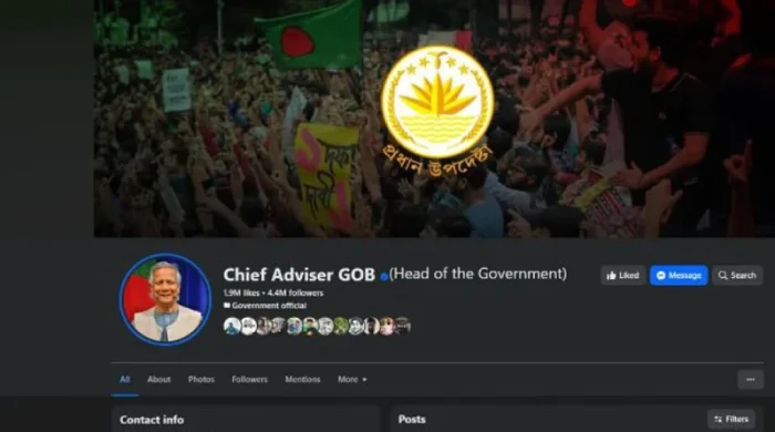 অন্তর্বর্তী সরকারের প্রধান উপদেষ্টার অফিসিয়াল ফেসবুক পেজ বন্ধের ঘোষণা দেওয়া হয়েছে। আজ বুধবার প্রধান উপদেষ্টার ভেরিফায়েড ফেসবুক পেজের এক পোস্টে এই ঘোষণা দেওয়া হয়। পোস্টে বলা হয়, অন্তর্বর্তী সরকারের প্রধান