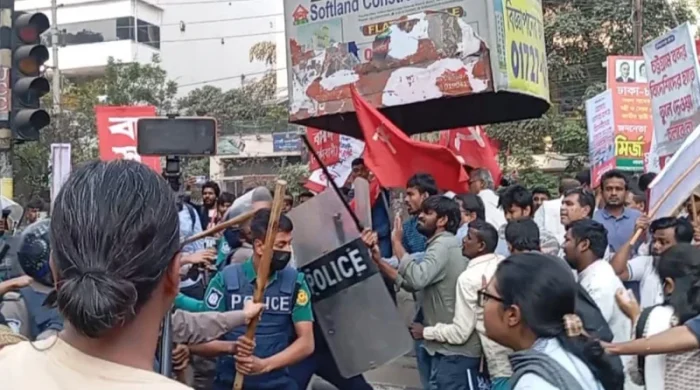 বিদেশি কোম্পানির সঙ্গে করা লালদিয়া-পানগাঁও টার্মিনাল ইজারা চুক্তি বাতিল এবং নিউমুরিং ও পতেঙ্গা টার্মিনাল বিদেশি কোম্পানিকে ইজারা দেওয়ার প্রক্রিয়া বন্ধের দাবিতে যমুনা অভিমুখে বাম গণতান্ত্রিক জোটসহ বিভিন্ন সংগঠনের বিক্ষোভ মিছিলে