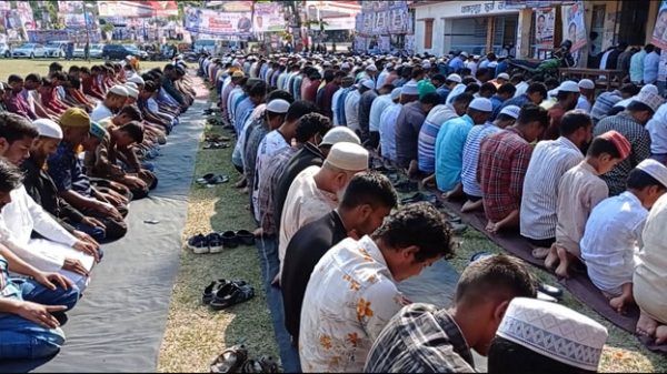 ফরিদপুরে বিএনপির বিভাগীয় সমাবেশস্থল কোমরপুর আব্দুল আজিজ ইন্সটিটিউটশন মাঠ-সংলগ্ন জামে মসজিদে পবিত্র জুমার নামাজ আদায় করেছেন আগত নেতাকর্মীরা। মসজিদ ছড়িয়ে সমাবেশের মাঠে গাড়িয়েছে জুমার নামাজের জামাত। শুক্রবার দুপুরে কোমরপুর স্কুল