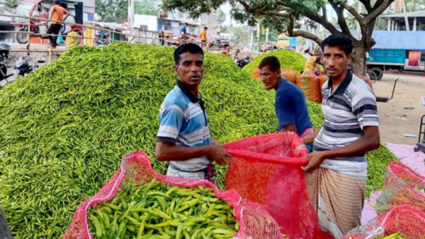 পাইকারি বাজারে গত দুই সপ্তাহ আগে কাঁচা মরিচের কেজি বিক্রি হয়েছে ১৫০ থেকে ২০০ টাকা। সেই কাঁচা মরিচ বগুড়ার আদমদীঘির পাইকারি বাজারে দুই সপ্তাহের ব্যবধানে নেমে এসেছে ১২ টাকা কেজিতে।
