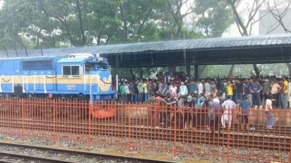 টিকিট না পেয়ে রাজধানীর বিমানবন্দর রেলওয়ে স্টেশনে নীলসাগর এক্সপ্রেস ট্রেন আটকে রেখেছেন শিক্ষার্থীসহ অন্যান্য যাত্রীরা। বুধবার সকালে নীলফামারীগামী নীলসাগর এক্সপ্রেস ট্রেনটিকে আটকে রেখেছেন রাজশাহী বিশ্ববিদ্যালয়ে ভর্তি পরীক্ষা দিতে ইচ্ছুক শিক্ষার্থী