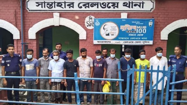 বগুড়ার আদমদীঘির সান্তাহার রেলওয়ে থানাধীন তিলকপুর রেলস্টেশন এলাকায় মাল্টিমিডিয়ার দোকানগুলোতে অভিযান চালিয়ে পর্ন ভিডিও বিক্রির অভিযোগে ১০ ব্যবসায়ীকে গ্রেপ্তার করেছে র্যাব। তাদের বিরুদ্ধে সান্তাহার রেলওয়ে থানায় মামলা দায়েরের পর আজ