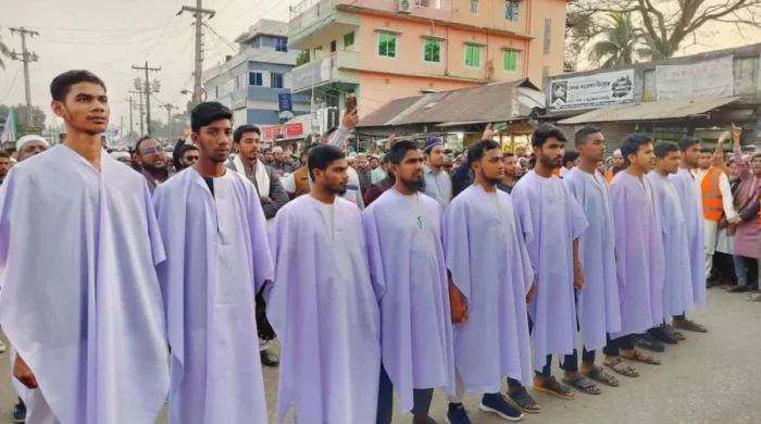 ভোলা-২ (বোরহানউদ্দিন-দৌলতখান) আসনের দাঁড়িপাল্লা প্রতীকের পক্ষে নজরকাড়া এক গণমিছিল অনুষ্ঠিত হয়েছে। ১১ দলীয় জোট প্রার্থীর সমর্থকদের কাফনের কাপড় পরে গণমিছিল অংশ নেওয়া শুধু একটি প্রচারণা নয় বরং প্রতীকী প্রতিবাদও বলা