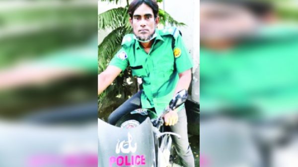 পরনে পোশাক বলছে, তিনি পুলিশের উপ-পরিদর্শক (এসআই) পদমর্যাদার কর্মকর্তা। কোমরে বেল্ট। মাথায় গুঁজেছেন ফিল্ড ক্যাপ। সঙ্গে মোটরসাইকেল। সামনের স্টিকারে লেখা পুলিশ। তার সঙ্গের লোকটির বেশভূষা ও কথাবার্তায় পরিষ্কার তিনি একজন