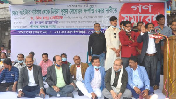 নারায়ণগঞ্জ সিটি করপোরেশনের মেয়র ডা: সেলিনা হায়াত আইভী ও তার পরিবারের বিরুদ্ধে শত কোটি টাকার মূল্যের একটি মন্দিরের দেবোত্তর সম্পত্তি দখলের অভিযোগে প্রতিবাদে গণসমাবেশ অনুষ্ঠিত হয়েছে। সমাবেশে যেকোনো মূল্যে ‘জীবন
