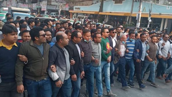 বিএনপি’র ভারপ্রাপ্ত চেয়ারম্যান তারেক রহমানের বিরুদ্ধে নড়াইলের আদালতে একটি মানহানি মামলায় সাজা দেয়ার প্রতিবাদে রাজধানীতে বিক্ষোভ মিছিল করেছে বিএনপি, যুবদল ও ছাত্রদলের নেতাকর্মীরা। বৃহস্পতিবার বিকেলে নয়া পল্টনে বিএনপির কেন্দ্রীয় কার্যালয়ের
