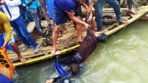রাজধানীর বুড়িগঙ্গায় যাত্রীবাহী লঞ্চডুবির ঘটনায় এখন পর্যন্ত ৩০ জনের লাশ উদ্ধার করেছে ফায়ার সার্ভিসের ডুবুরি দল ও কোস্ট গার্ড। এর আগে সোমবার সকালে অর্ধশতাধিক যাত্রী নিয়ে বুড়িগঙ্গায় লঞ্চডুবির ঘটনা ঘটে।