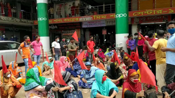 সাভারের আশুলিয়ায় তিন মাসের বকেয়া বেতনের দাবিতে অবস্থান কর্মসূচি পালন করেছে বিক্ষুব্ধ শ্রমিকরা। আজ রোববার সকালে আশুলিয়ার জামগড়া এলাকার সমীর প্লাজার সামনে অবস্থান নেন পোশাক নীট ওয়্যার লিমিটেড কারখানার শ্রমিকরা।