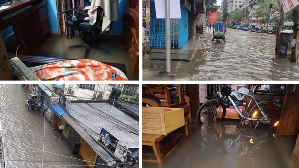 টানা বর্ষণে নারায়ণগঞ্জ শহর ও শহরতলীর প্রায় এলাকা পানিতে ডুবে গেছে। কোথাও হাঁটু পানি আবার কোথাও কোমর সমান পানি। অনেকের বসতঘরে পানি উঠেছে। ঘরের আসবাবপত্র তলিয়ে আছে পানির নিচে। বিশেষ