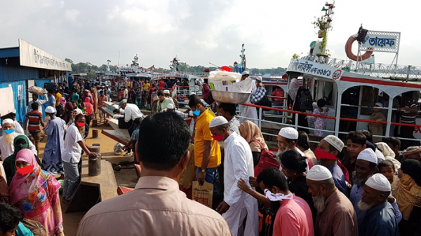 শিমুলিয়া-কাঁঠালবাড়ি নৌরুটে ৮৭টি লঞ্চ চলাচল শুরু হয়েছে আজ রোববার থেকে। মুন্সীগঞ্জের শিমুলিয়া ঘাট থেকে দক্ষিণবঙ্গ থেকে ঢাকামুখী যাত্রীর চাপ রয়েছে। লঞ্চে করে কর্মস্থলে ফেরা মানুষ সামাজিক দূরত্ব বজায় রাখছে না।