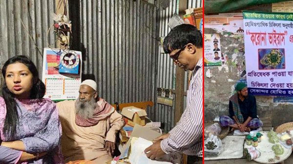 মানিকগঞ্জের ঘিওরে করোনাভাইরাস নিয়ে আতঙ্কের কিছু নেই হোমিও চিকিৎসায় করোনাভাইরাসের প্রতিষেধক পাওয়া যায়। চিকিৎসা দেয়া হয় ও নির্মূল সম্ভব এমন প্রচারপত্র বিলির মাধ্যমে সাধারণ জনগণকে প্রতারিত করার বিষয়টি নিয়ে আটক