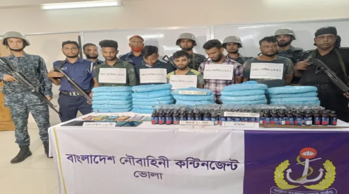 ভোলায় যৌথ বাহিনীর অভিযানে বিপুল পরিমাণ ফেনসিডিল ও গাঁজাসহ পাঁচ মাদককারবারিকে আটক করা হয়েছে। এ সময় ২৮ কেজি ৫শ গ্রাম গাঁজা ও ১৮৭ বোতল ফেনসিডিল, ১৭ পিস ইয়াবা, একটি রাম