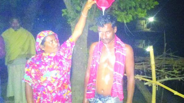 গাজীপুরের শ্রীপুরে দ্বিতীয় স্ত্রীকে তালাক দিয়ে ফিরে আসায় স্বামীকে দুধ দিয়ে গোসল করিয়ে বরণ করেছে তার প্রথম স্ত্রী ও স্বজনরা। এ উপলক্ষে রাতভর নানা আনন্দ অনুষ্ঠানেরও আয়োজন করা হয়। গ্রামবাসী