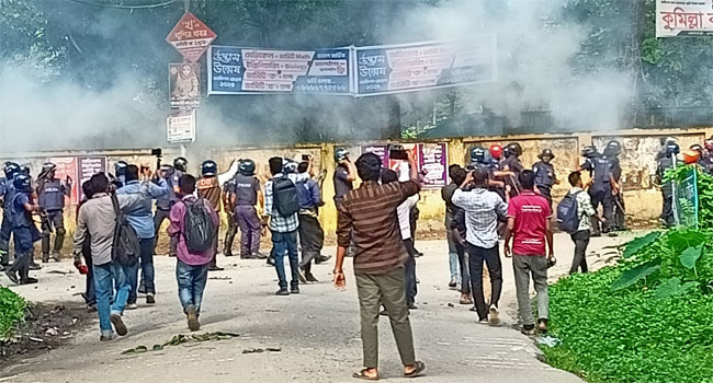 সরকারি চাকরিতে কোটা বাতিলের দাবিতে আন্দোলনরত কুমিল্লা বিশ্ববিদ্যালয়ের শিক্ষার্থীদের সাথে পুলিশের সংঘর্ষ হয়েছে। এতে সাংবাদিকসহ কমপক্ষে ২০ জন শিক্ষার্থী আহত হয়েছেন। বৃহস্পতিবার (১১ জুলাই) বিকেল সোয়া ৩টায় বিশ্ববিদ্যালয়ের শিক্ষার্থীরা ঢাকা-চট্টগ্রাম