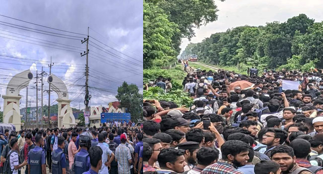 শিক্ষার্থীদের নিরাপত্তা নিশ্চিত করতে চট্টগ্রাম বিশ্ববিদ্যালয় অনির্দিষ্টকালের জন্য বন্ধ ঘোষণা করে হলত্যাগের নির্দেশ দিয়েছিল বিশ্ববিদ্যালয় কর্তৃপক্ষ। সে নির্দেশ মানতে নারাজ শিক্ষার্থীরা। বুধবার সন্ধ্যার ৬টার মধ্যে ছাত্রীদের এবং রাত ৯টার মধ্যে
