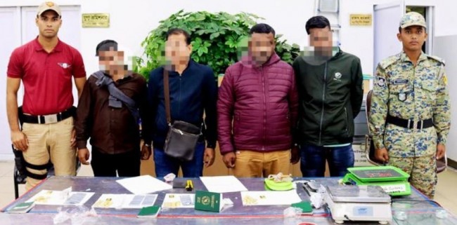 হযরত শাহজালাল আন্তর্জাতিক বিমানবন্দরে স্বর্ণ পাচারের সময় এনএসআই-কাস্টমস-এপিবিএনের হাতে আটক হয়েছেন চার যাত্রী। তাদের কাছ থেকে দুই কেজি ১০৪ গ্রাম স্বর্ণের বার এবং স্বর্ণালঙ্কার উদ্ধার করা হয়েছে। এর বাজারমূল্য প্রায়