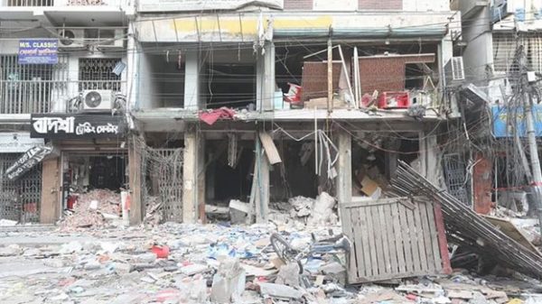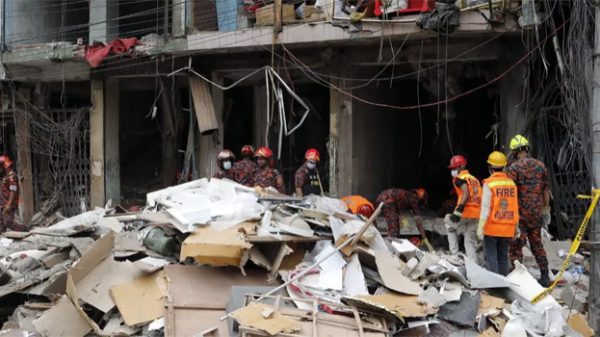 বিস্ফোরণে ক্ষতিগ্রস্ত ভবনটির নিচতলায় এখনো কিছু মানুষ আটকে আছেন বলে জানিয়েছেন ঢাকা মেট্রোপলিটন পুলিশের (ডিএমপি) যুগ্ম কমিশনার বিপ্লব কুমার। মঙ্গলবার সন্ধ্যায় তিনি এতথ্য জানান। তিনি বলেন, বিস্ফোরণে ক্ষতিগ্রস্ত ভবনের নিচতলা