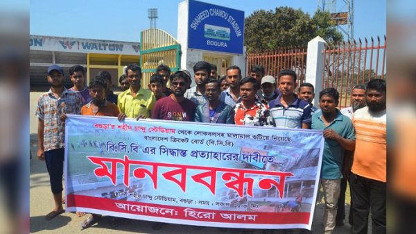 বগুড়ায় শহীদ চান্দু স্টেডিয়ামে বিসিবির কার্যক্রম পুনর্বহাল ও খেলা ফিরিয়ে দেওয়ার দাবিতে মানববন্ধন করেছেন আলোচিত ইউটিবার আশরাফুল আলম ওরফে হিরো আলম। আজ মঙ্গলবার দুপুর পৌনে ১২টার দিকে স্টেডিয়াম প্রাঙ্গণে