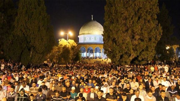 ফিলিস্তিনে অবস্থিত মুসলমানদের প্রথম কেবলাখ্যাত মসজিদুল আকসায় রমজানের প্রথম তারাবি অনুষ্ঠিত হয়েছে। উৎসবমুখর পরিবেশে এতে অংশ নেন অসংখ্য মুসল্লি। জেরুসালেম, পূর্বতীরসহ বিভিন্ন অঞ্চল থেকে তারা আগমন করেন। এদিন মসজিদ ও