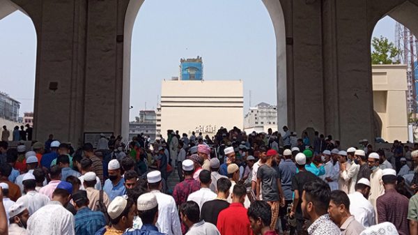 পবিত্র রমজান মাসের প্রথম জুমায় জাতীয় মসজিদ বায়তুল মোকাররমসহ অন্যান্য মসজিদগুলোতে মুসল্লিদের ঢল দেখা গেছে। রাজধানীর অনেক মসজিদের ভেতরে মুসল্লিদের নামাজের জায়গার সংকুলান না হওয়ায় বাইরে নামাজ পড়তে দেখা গেছে।