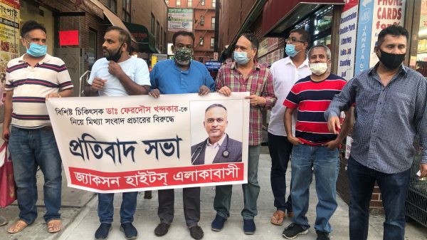বিশিষ্ট মেডিসিন বিশেষজ্ঞ ডা. ফেরদৌস খন্দকারের বিরুদ্ধে অপপ্রচার, মিথ্যা ও বানোয়াট প্রচারণা বন্ধের দাবি জানিয়ে প্রতিবাদ সমাবেশ হয়েছে নিউইয়র্কে। জ্যাকসন হাইটস এলাকাবাসীর পক্ষ থেকে সোমবার বিকালে আয়োজিত এই সমাবেশে বক্তারা
