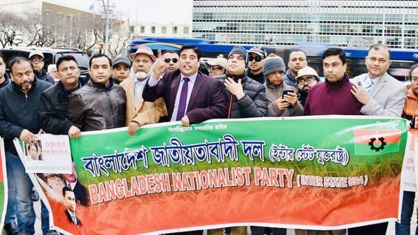 ২ মার্চ সোমবার ইন্টার স্টেট বিএনপি যুক্তরাষ্ট্র কার্য্যকরী কমিটির উদ্যোগে জাতিসংঘের সামনে বাংলাদেশ জাতীয়তাবাদী দল (বিএনপি)র চেয়ারপারর্সন গণতন্ত্রের নেত্রী বিরোধী আন্দোলন ও সংগ্রামে আপোষহীন দেশনেত্রী বেগম খালেদা জিয়াকে মিথ্যা মামলা