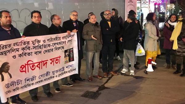 ‘শরিয়ত সরকার বয়াতির মুক্তি দাবি এবং পাঠ্য-পুস্তকে অমুসলিম কবি-সাহিত্যিক-লেখকদের লেখা ও কবিতা বাদ দিয়ে সাম্প্রদায়িক ভাবধারার লেখা অন্তর্ভুক্তি’র অভিযোগ করে এহেন পরিক্রমা থেকে শেখ হাসিনার সরকারকে বিরত থাকার আহবানে নিউইয়র্কে