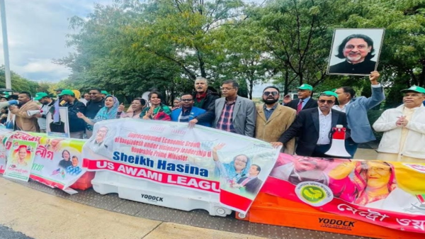 ওয়াশিংটন ডিসি সংলগ্ন ভার্জিনিয়ায় প্রধানমন্ত্রী শেখ হাসিনার হোটেলের সামনে ২৪ সেপ্টেম্বর রবিবার দুপুর থেকে অপরাহ্ন পর্যন্ত যুক্তরাষ্ট্র আওয়ামী লীগ ও বিএনপির নেতা-কর্মীরা পরস্পর বিরোধী স্লোগানে গোটা এলাকা প্রকম্পিত করে। আওয়ামী