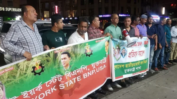 অধ্যাপক দেলোয়ার হোসেন ও আকতার হোসেন বাদল নেতৃত্বাধীন যুক্তরাষ্ট্র বিএনপি ও অঙ্গ সংগঠন আয়োজিত মানব বন্ধনে শেখ হাসিনা সরকারের পদত্যাগ দাবী করা হয়েছে। শুক্রবার অনুষ্ঠিত ঢাকায় কেন্দ্রীয় সমাবেশের সমর্থনে এবং