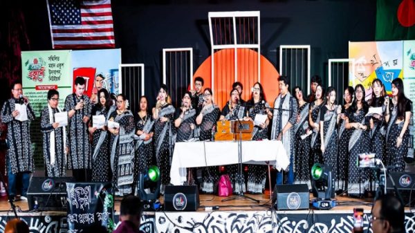 শোক-কে শক্তিতে পরিণত করে ব্যাপক আয়োজনে দেশের ন্যায় প্রবাসের এবার অমর একুশে ফেব্রুয়ারি, মহান শহীদ দিবস তথা আন্তর্জাতিক মাতৃভাষা দিবস পালিত হয়েছে। এ উপলক্ষে নিউইয়র্কসহ উত্তর আমেরিকায় ব্যাপক প্রস্তুতি গ্রহণ করা হয়। মঙ্গলবার ছিলো অমর একুশে ফেব্রুয়ারি। দিবসটির প্রথম প্রহর থেকে অর্থাৎ সোমবার থেকেই শুরু হয় অনুষ্ঠানমালা। ওয়াশিংটনে বাংলাদেশ দূতাবাস, জাতিসংঘের বাংলাদেশ মিশন, নিউইয়র্ক বাংলাদেশ কনস্যুলেট ছাড়াও বাংলাদেশ সোসাইটি ও ঢাকা বিশ্ববিদ্যালয় এলামনাই এসোসিয়েশন ইউএসএ, নিউইয়র্কের মুক্তধারা ফাউন্ডেশন ও বাঙালী’র চেতনা মঞ্চ, জ্যাকসন হাইটস বাংলাদেশি বিজনেস এসেসিয়েশন-জেবিবিএ, কুইন্স লাইব্রেরি ও জ্যামাইকা বাংলাদেশ ফ্রেন্ডস সোসাইটি, বাফা, সিলেট বিভাগীয় সংগঠন প্রভৃতিসহ বিভিন্ন সামাজিক ও রাজনৈতিক সংগঠনের উদ্যোগে একুশের কর্মসূচি পালিত হয়। এছাড়াও প্রতি বছরের মতো বাফা ব্রঙ্কসে প্রভাত ফেরির আয়োজন করে। বাংলাদেশ সোসাইটি: অমর একুশে আন্তর্জাতিক মাতৃভাষা দিবস পালন উপলক্ষে বাংলাদেশ সোসাইটি সোমবার (২০ ফেব্রুয়ারি) নিউইয়র্ক সিটির উডসাইডস্থ তিব্বতি কমিউনিটি সেন্টারে একুশের অনুষ্ঠান আয়োজন করে। অনুষ্ঠানমালার মধ্যে ছিলো আলোচনা ও সাংস্কৃতিক অনুষ্ঠান। এখানে নির্মিত অস্থায়ী শহীদ মিনারে বিভিন্ন রাজনৈতিক ও সামাজিক সংগঠনের পক্ষ থেকে ভাষা শহীদদের প্রতি শ্রদ্ধা জানানো হয়। আলোচনা সভায় সভাপতিত্ব করেন সোসাইটির সভাপতি আব্দুর রব মিয়া এবং একুশের অনুষ্ঠান সফল করায় সংশ্লিস্ট সকলের প্রতি ধন্যবাদ জানান সাধারণ সম্পাদক রুহুল আমীন সিদ্দিকী। অনুষ্ঠানে বিপুল সংখ্যক প্রবাসীর উপস্থিতি ছিলো লক্ষণীয়। এখানে প্রথমে শহীদ মিনারে প্রথম পুষ্পস্তবক অর্পণ করেন সোসাইটির নেতৃবৃন্দ। পরবর্তীতে সভাপতি আবু তাহেরের নেতৃত্বে নিউইয়র্ক বাংলাদেশ প্রেসক্লাব ছাড়াও যুক্তরাষ্ট্র আওয়ামী লীগ, যুক্তরাষ্ট্র বিএনপি, যুক্তরাষ্ট্র জাতীয় পার্টি, বৃহত্তর নোয়াখালী সমিতি ইউএসএ, বৃহত্তর কুমুল্লা সমিতি ইউএসএ, বাংলাদেশ ল’ সোসাইটি ইউএসএ, সিলেট এমসি এন্ড গভ: কলেজ এলামনাই এসোসিয়েশন, কুইন্স বাংলাদেশ সোসাইটি, ইয়েলো সোসাইটি, ব্রাক্ষণবাড়িয়া জেলা সমিতি, মুন্সীগঞ্জ-বিক্রমপর এসোসিয়েশন, নর্থ বেঙ্গল ফাউন্ডেশন, প্রবাসী শরিয়তপুর সমিতি ইউএসএ, দোহার উপজেলা সমিতি ইউএসএসহ অর্ধ শতাধিক সংগঠনের পক্ষ থেকে শহীদ মিনারে পুষ্পস্তবক অর্পণ করে শহীদদের প্রতি শ্রদ্ধা জানানো হয়। প্রকাশ করা হয় ‘অক্ষর’ শীর্ষক স্মরণিকা। এছাড়াও ছিলো চিত্রাঙ্কন, রচনা ও আবৃত্তি প্রতিযোগিতা। সোসাইটির একুশের অনুষ্ঠান সফল করতে মহিউদ্দিন দেওয়ানকে আহ্বায়ক, ফারুক চৌধুরীকে যুগ্ম আহ্বায়ক, মাই