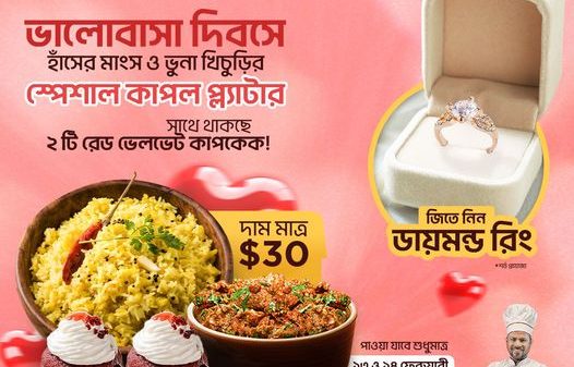 ভালোবাসা দিবসে নিউইয়র্কে ব্রঙ্কসের খলিল বিরিয়ানী হাউজ খাবারের স্পেশাল আয়োজন। কাস্টমাররা তাদের প্রিয়জনদের নিয়ে সুস্বাদু মানসম্মত হালাল খাবার খেয়ে ভালোবাসা দিবস উদযাপন করবেন। ভালোবাসা দিবসটি উপলক্ষ্যে প্রতিষ্ঠিানটির ব্রঙ্কসের বাংলাবাজার ও