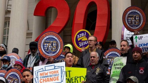 নিউইয়র্কে মিনিমাম ওয়েইজ বা ন্যূনতম মজুরি কত হবে তা নিয়ে গভর্নর ক্যাথি হোকুল এবং প্রগ্রেসিভ বিভিন্ন সংগঠনের মধ্যে রশি টানাটানি শুরু হয়েছে। গভর্নরের প্রস্তাব অনুযায়ী ন্যূনতম মজুরি প্রতি বছর সর্বোচ্চ