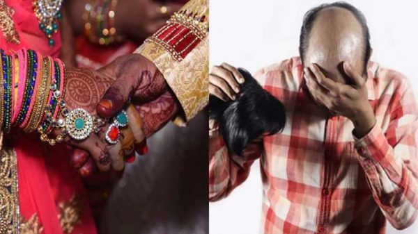 বিয়েতে চলে এসেছেন বরযাত্রীরা। বর-কনের মালাবদল চলছে। এমন সময় কনে হঠাৎ বুঝতে পারেন, বর মাথায় পরচুলা পরে বিয়ে করতে এসেছেন। তাতেই বেঁকে বসেন ওই কনে। তিনি টেকো বর বিয়ে করতে