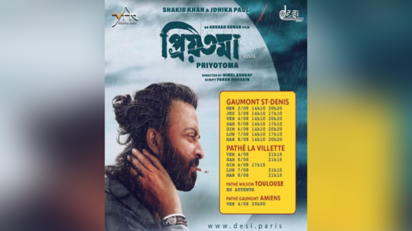 ফ্রান্সে মুক্তি পেল শাকিব খান ও ইধিকা পাল অভিনীত সিনেমা ‘প্রিয়তমা’। দেশি এন্টারটেইনমেন্ট প্যারিসের উদ্যোগে আজ বুধবার থেকে সিনেমাটি প্রদর্শন শুরু করা হয়েছে। রাজধানীর প্যারিসসহ আরও দুই শহর অ্যামিন ও