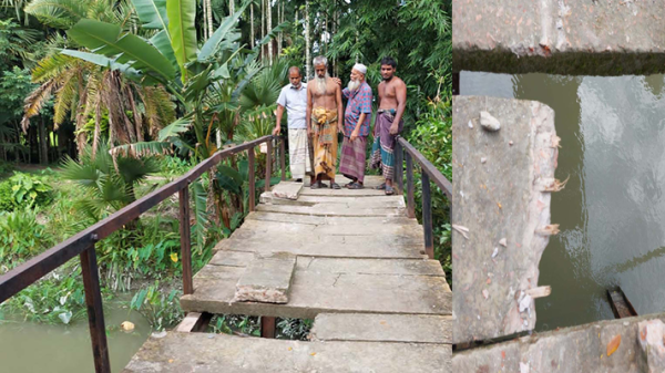 পিরোজপুরের কাউখালীতে ব্রিজ মেরামত করতে রডের পরিবর্তে ব্যবহার করা হয়েছে সুপারি গাছ। ওই উপজেলার সদর ইউনিয়নের ৮ নম্বর ওয়ার্ডের (কাঠালিয়া) নূরুল ইসলামের বাড়ির সামনে ব্রিজ মেরামতের সময় সুপারি গাছ ব্যবহার