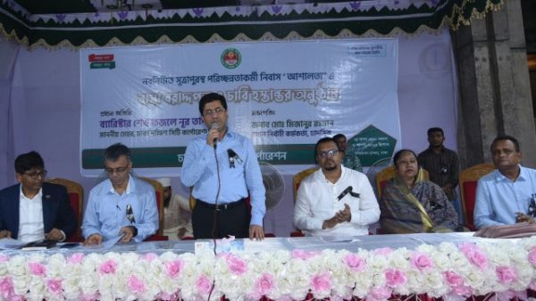 ঢাকা দক্ষিণ সিটি করপোরেশনের (ডিএসসিসি) মেয়র ব্যারিস্টার শেখ ফজলে নূর তাপস জানিয়েছেন, প্রধানমন্ত্রী শেখ হাসিনার অঙ্গীকার পূরণে সব পরিছন্নতাকর্মীকে বাসা বরাদ্দ দেয়া হবে। মঙ্গলবার (৮ আগস্ট) নগর ভবন প্রাঙ্গণে নবনির্মিত